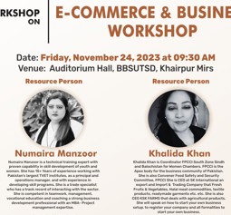 E-Commerce & Business WorkshopThe Benazir Bhutto Shaheed University of Technology and Skill Development, Khairpur Mirs Presents Workshop on: E-Commerce & Business Workshop. check event