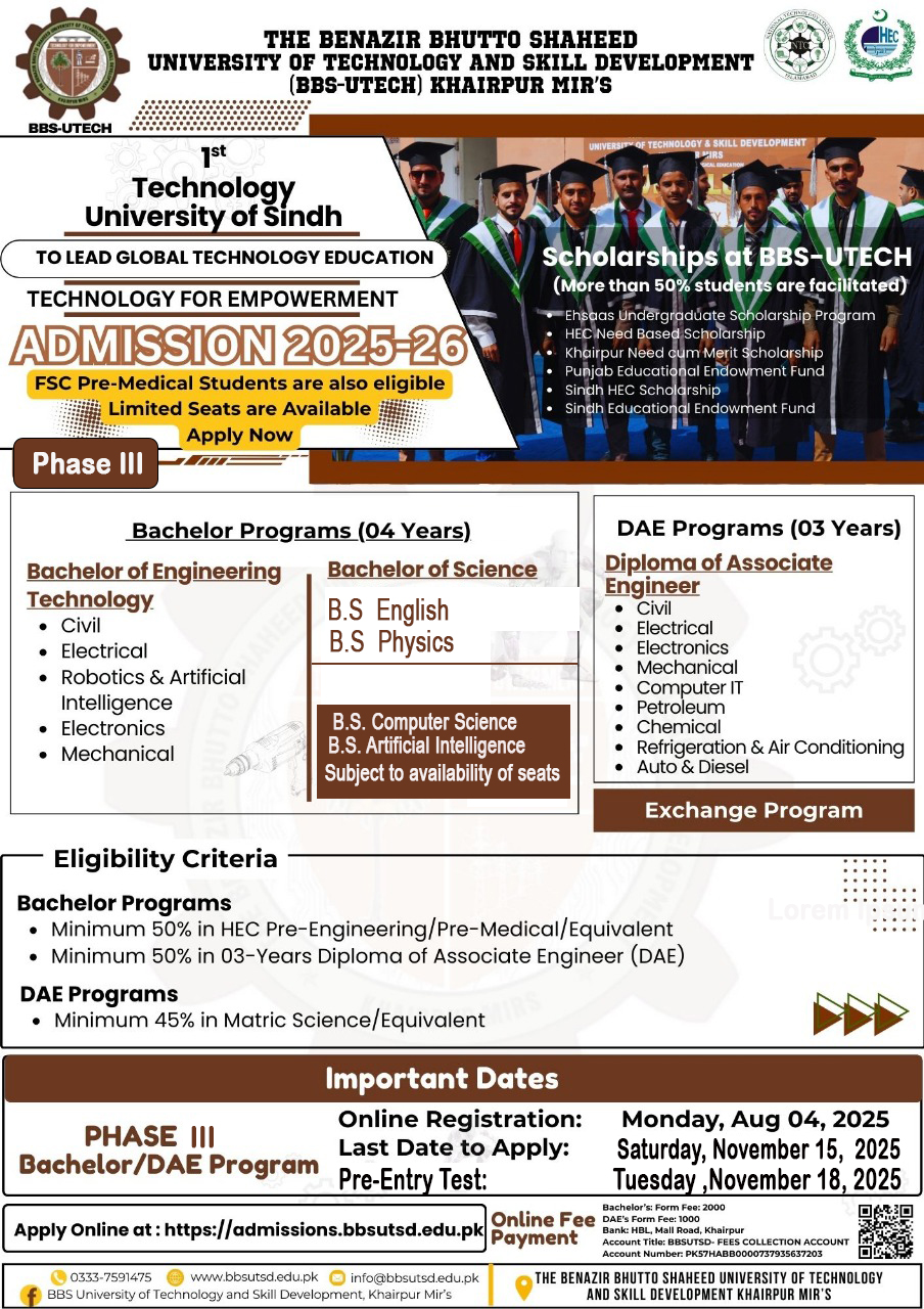 Last date to Apply in Bachelor's/DAE's program: Saturday, Nov 15, 2025