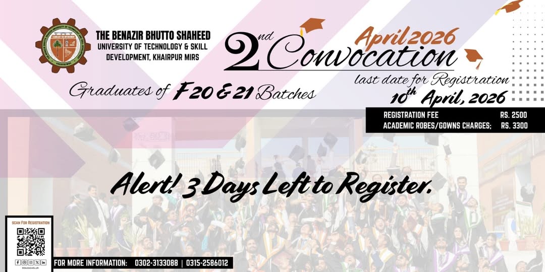 The countdown has begun for the Convocation 2026 of The Benazir Bhutto Shaheed University of Technology & Skill Development, Khairpur Mirs!